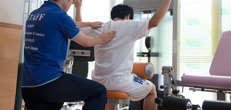 当院の特徴である、専門の理学療法士が、疾患別にプログラムを作成し専用の治療器、トレーニング器機を使用し治療を行います。スポーツ選手が競技復帰するまでのアスレチックリハビリテーション、一般の患者様が自宅で継続可能なトレーニングまで、丁寧にご指導いたします。